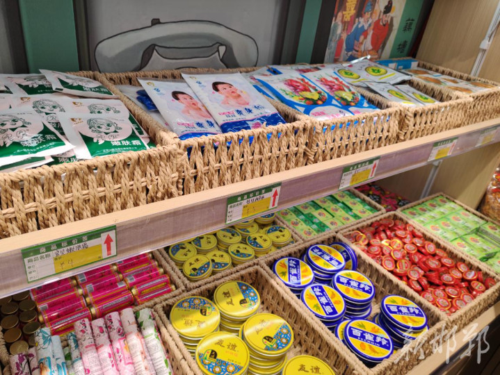 “我从小用的是一个叫做‘万紫千红’的润肤膏。记得我12岁刚上初一的那年,每天早上起来都是快速吃饭后赶紧穿棉衣背书包推上自行车准备出发,每当这时我爸爸就急急忙忙用手指从‘万紫千红’圆铁盒中挖出一小块润肤膏,在我脸上涂抹开。遇到我抗拒,他就说不涂的话大冬天皮肤吹了冷风怕皴裂。爸爸手掌的温暖和那个润肤膏的香味我至今都记忆犹新。看到店里居然有卖,我说什么也得买一盒。”正在购物的崔女士说道。