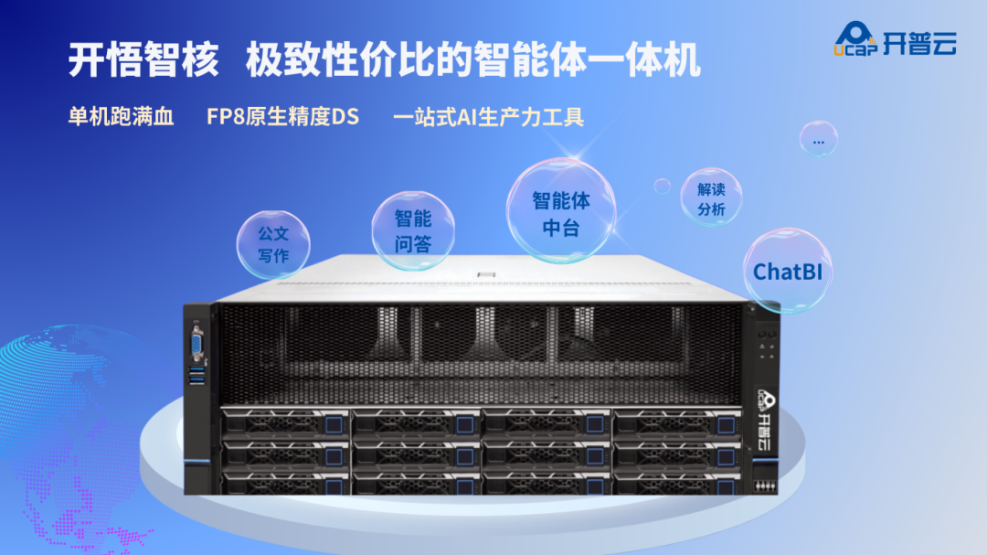 开悟智核是开普云为解决大模型落地困难推出的极致性价比智能体一体机,全系列产品均标配满血FP8精度无损版DeepSeek-V3/R1,按需搭载开悟智能体平台、AI助手、ChatBI等一站式AI生产力工具,具有快速搭建智能体应用、文稿撰写、智能问答、智能检索及数据管理分析等功能,开箱即用。产品定价区间为19.9万-149.9万元,通过多梯度产品矩阵适配多样化企业需求,覆盖从数十人至千人级规模组织的私有化部署场景,在保障核心AI功能完整性的同时,提供兼具性能优势与极具性价比的解决方案。
